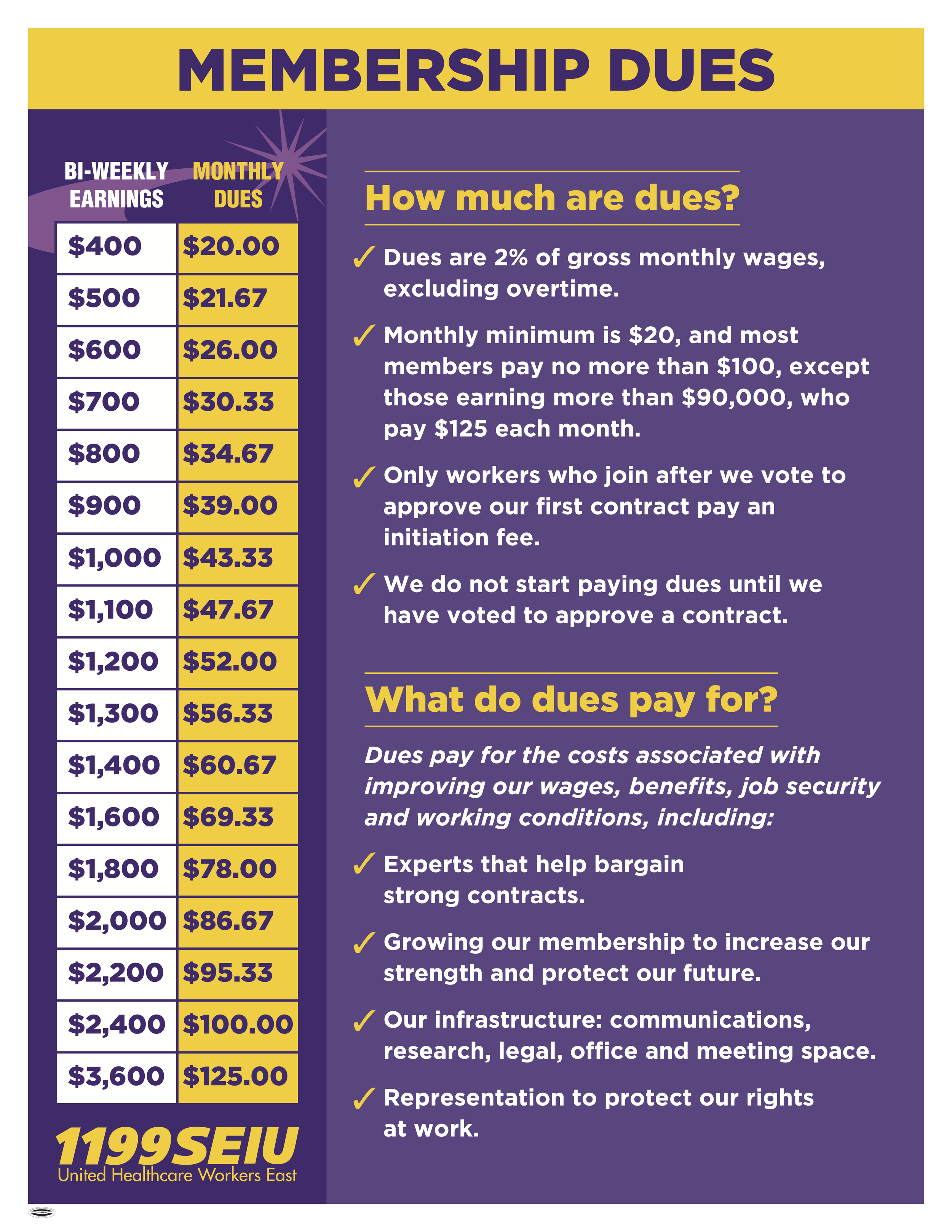 ✔️Dues are 2% of gross monthly base wages, excluding overtime.